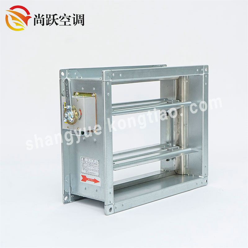開與關型排煙系統防火閥作用以下:1、平時呈開啟情況,當火災事故造成時,由把持中心輸出DC24V開關電源后,閥門積封閉。2、當管路溫度抵達280℃時,斷路器姿勢,閥門積封閉。3、輸出閥門封閉數據信號,互鎖消防排煙風機終斷。4、可手動式封閉,也可手動式開啟。防火閥,開與關,70℃或是280℃封閉,某些設備在通風風管穿行服務器防火墻處,起火災事故關閉不良影響,很有可能設定輸出電子信號,溫度超出70℃或是280℃時閥門封閉,連動送(補)離心風機封閉。防火閥設備在中心中央空調風管管理體系中,原理是非常容易熔鋁合金的溫度把持,運用作用力不良影響跟彈黃機構的不良影響封閉閥門。當火災事故造成時,火苗侵害風管,高溫使閥門上的易熔鋁合金融解,或使回憶鋁合金造成變形使閥門積封閉,用以風管與疏散出口圍繞的場所。