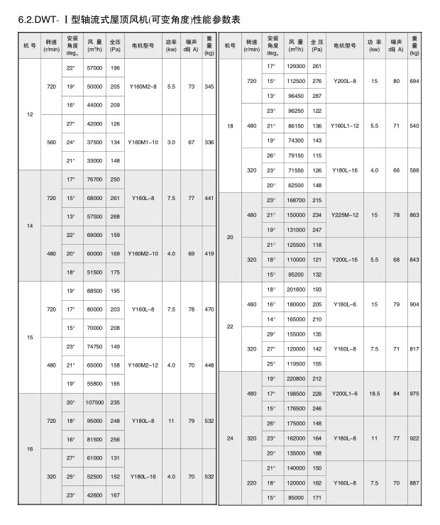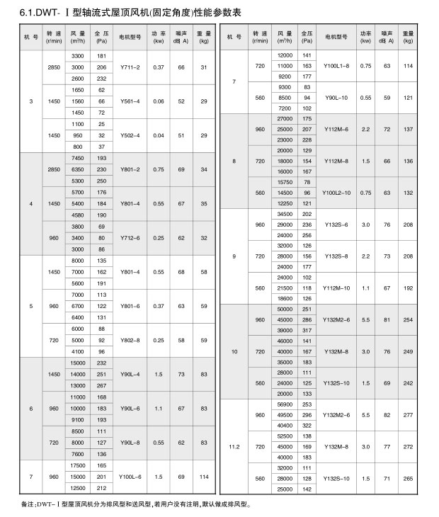 1.DWT-I型玻璃鋼軸流屋頂通風機是應用最廣泛的屋頂風機,適用于中低壓、大流量的使用場所。如工礦企業、車間、倉庫、體育館、影劇院、發電廠、化驗室、橡膠廠、汽車廠、摩托車廠及紡織、冶金等場所通風換氣使用。本系列風機具有造型美觀,結構緊湊、強度高、重量輕、耐腐蝕、抗老化、耗電省、噪音低、運轉可靠、經濟實用、安裝維修方便等特點。其所輸送氣體不允許含有粘性物質、所含粉塵及硬質顆粒≤150mg/m3、氣體溫度≤60℃、相對濕度≤100%。